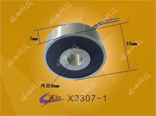 X3307吸盤式電磁鐵采用特殊的結(jié)構(gòu):產(chǎn)品直徑為33mm,高度為7mm,內(nèi)置空心線圈,產(chǎn)品體積小,吸力大。產(chǎn)品主要用于小型自動(dòng)化設(shè)備以及玩具產(chǎn)品上。