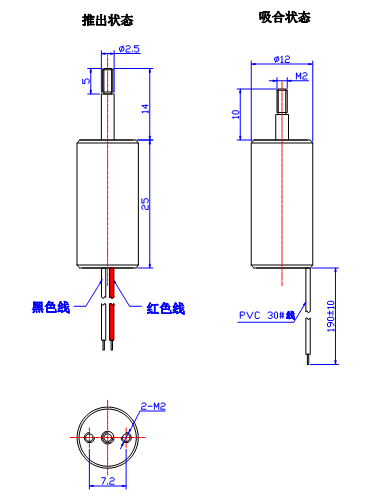 產品尺寸:直徑12mm * 高度25mm 頂 桿直徑2.5mm 螺紋為M2